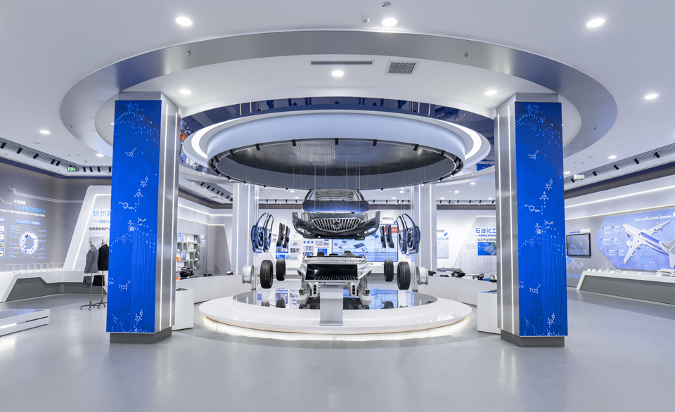 整體營造上以內(nèi)容的前端性、空間的未來感與形式的科技感營造創(chuàng)新概念,從視覺、觸覺、聽覺等多維度的展陳手段, 為參觀者營造豐富的互動體驗(yàn),讓人、空間、信息充分融合與鏈接。
